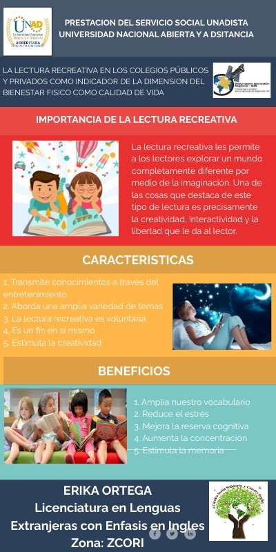 La lectura recreativa les permite a los lectores explorar un mundo completamente diferente por medio de la imaginación. Una de las cosas que destaca de este tipo de lectura es precisamente la creatividad, interactividad y la libertad que le da al lector.