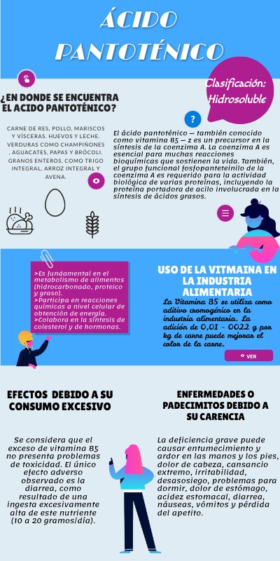 El ácido pantoténico — también conocido como vitamina B5 — z es un precursor en la síntesis de la coenzima A. La coenzima A es esencial para muchas reacciones bioquímicas que sostienen la vida. También, el grupo funcional fosfopanteteinilo de la coenzima A es requerido para la actividad biológica de varias proteínas, incluyendo la proteína portadora de acilo involucrada en la síntesis de ácidos grasos.