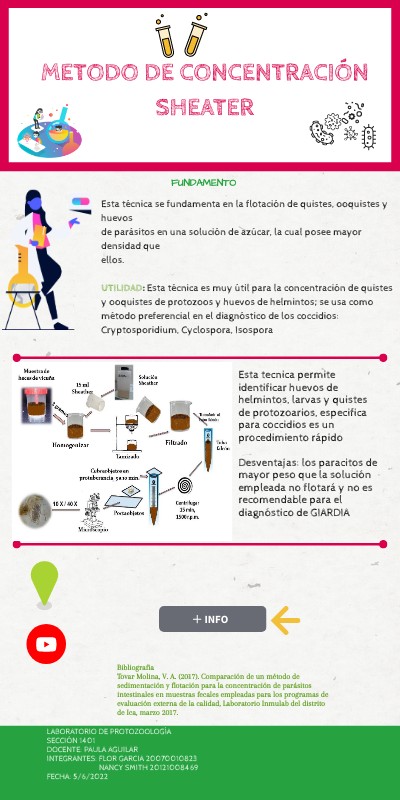 Esta técnica se fundamenta en la flotación de quistes, ooquistes y huevos de parásitos en una solución de azúcar, la cual posee mayor densidad que ellos. UTILIDAD: Esta técnica es muy útil para la concentración de quistes y ooquistes de protozoos y huevos de helmintos; se usa como método preferencial en el diagnóstico de los coccidios: Cryptosporidium, Cyclospora, Isospora