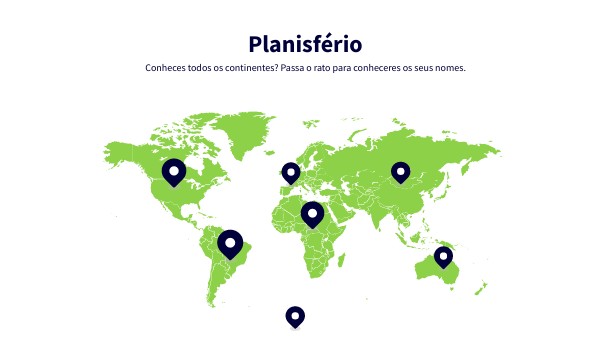 Conheces todos os continentes? Passa o rato para conheceres os seus nomes.