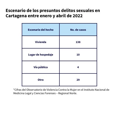 Escenario de los presuntos delitos sexuales en Cartagena entre enero y abril de 2022