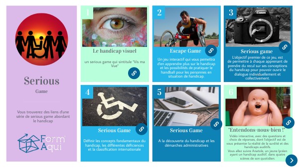 Vous trouverez des liens d'une série de serious game abordant le handicap