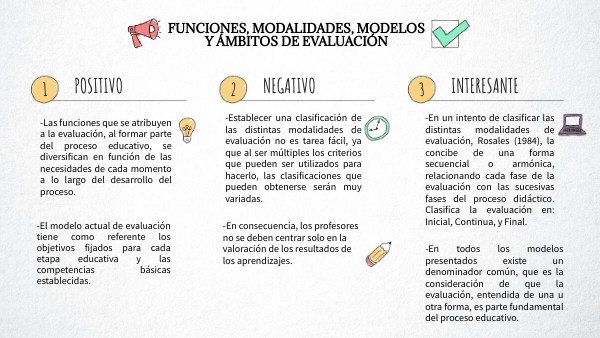 -Las funciones que se atribuyen a la evaluación, al formar parte del proceso educativo, se diversifican en función de las necesidades de cada momento a lo largo del desarrollo del proceso.