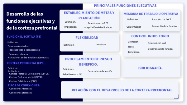Definición y descripción de las funciones ejecutivas junto al CPF además del papel que juegan las FE en dicha corteza