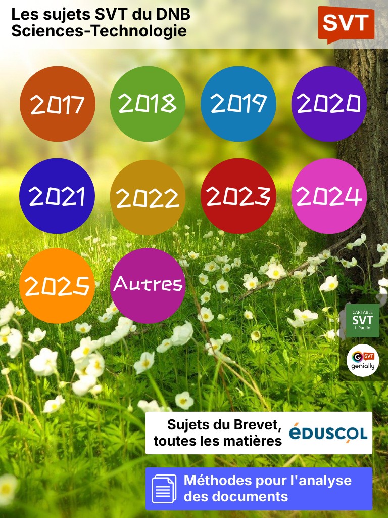 Métropole : SVT & Physique-ChimieLe vivant et son évolution Les pigments des plantes à feuilles rouges Amérique du Nord : SVT & Physique-ChimieLe corps humain et la santé La fertilité d'un couple Pondichéry : SVT & Physique-ChimieLa planète Terre, l'environnement et l'action humaine Trop de sel dans le sol sénégalais Métropole Septembre : SVT & Physique-ChimieLa planète Terre, l'environnement et l'action humaine Un tremblement de terre en Méditerranée