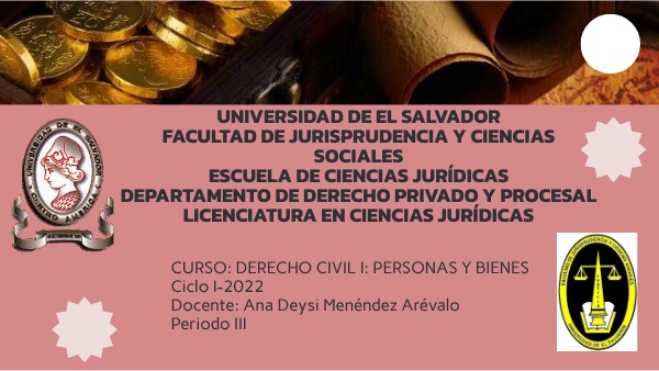 CURSO: DERECHO CIVIL I: PERSONAS Y BIENES Ciclo I-2022 Docente: Ana Deysi Menéndez Arévalo Periodo III