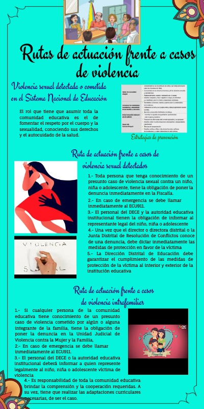 Ministerio de Educación. (2014). Protocolos y rutas de accion frente a hechos de violencia. 1–66. https://educacion.gob.ec/wp-content/uploads/downloads/2016/04/PROTOCOLOS-Y-RUTAS-DE-ACTUACION.pdf Ministerio de Educación. (2020). Protocolos y rutas de actuacion frente a situaciones de violencia detectadas o cometidas en el sistema educativo. In Journal of Chemical Information and Modeling (Vol. 53, Issue 9). https://educacion.gob.ec/wp-content/uploads/downloads/2020/04/Protocolos-situaciones-de-violencia.pdf