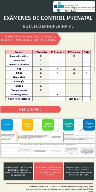 Tomado de Resolución 3280 de 2018: «Lineamiento técnico y operativo de la ruta integral de atención en salud materno perinatal». Ministerio de Salud ( julio 2018)