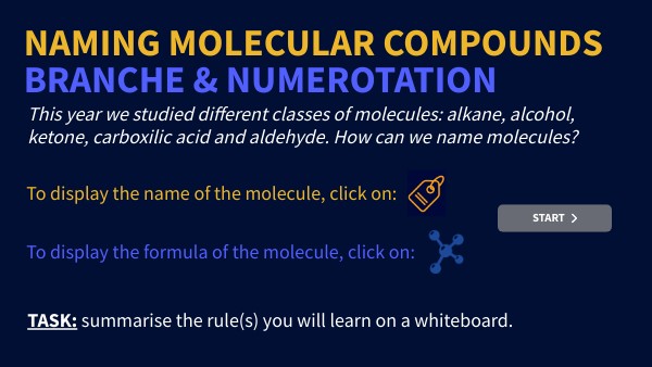 This year we studied different classes of molecules: alkane, alcohol, ketone, carboxilic acid and aldehyde. How can we name molecules?