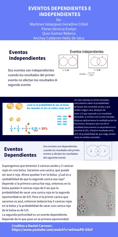 Dos eventos son dependientes cuando los resultados del primer evento si afcetan los resultados del siguiente evento
