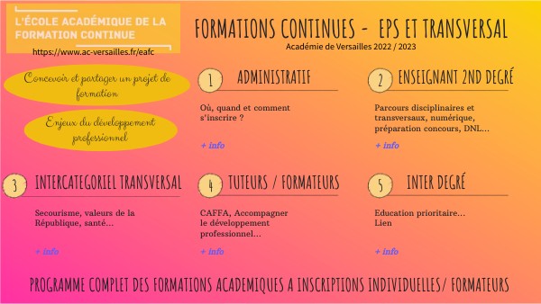 PRogramme complet des formations academiques A inscriptions individuelles/ Formateurs