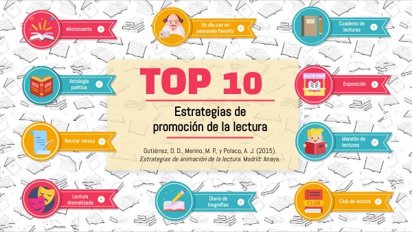 Gutiérrez, D. D., Merino, M. P., y Polaco, A. J. (2015). Estrategias de animación de la lectura. Madrid: Anaya.