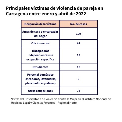 Principales víctimas de violencia de pareja en Cartagena entre enero y abril de 2022