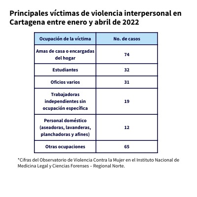 Principales víctimas de violencia interpersonal en Cartagena entre enero y abril de 2022