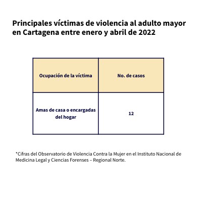 Principales víctimas de violencia al adulto mayor en Cartagena entre enero y abril de 2022