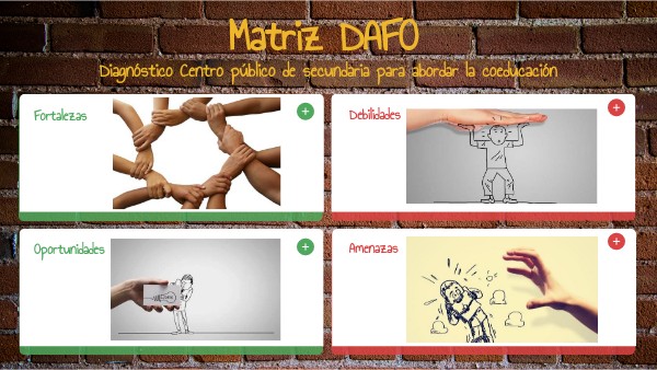 En este DAFO presento diagnóstico de un Centro público de secundaria para abordar la coeducación , desde la perspectiva de Educadora Social y madre de dos hijos adolescentes, .