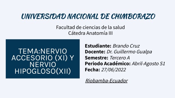 Tema:Nervio accesorio (XI) y Nervio hipoGloso(XII)