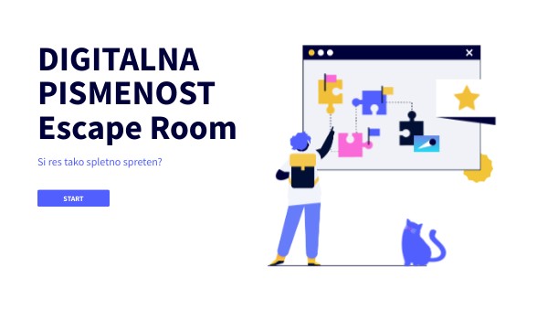 Se imaš za strokovnjaka na področju medijske pismenosti? Dokaži. Najdi pot iz te sobe pobega! ... Za gesla uporabljaj zgolj VELIKE TISKANE črke in ne pozabi na PRESLEDKE.Za avdio in video posnetke kliknite na interaktivno vsebino.... Pozorno spremljajte vse prosojnice in EMOTIKONE, ki skrivajo pravljični lik, ki bo tudi končno geslo za izhod iz sobe pobega. ... Good luck!