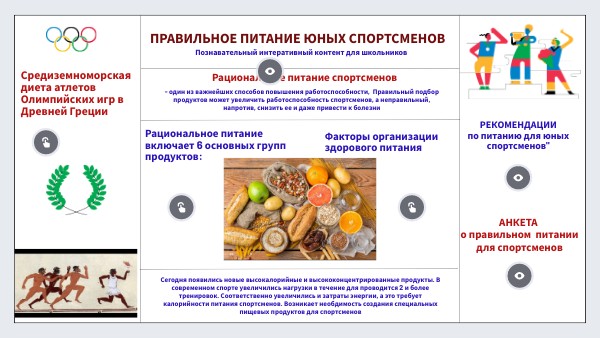 В Древней Греции спортсмены, прошедшие окончательный отбор для участия в Олимпийскизх играх, направлялись в Олимпию и давали клятву. Они обещали честно соревноваться, соблюдая правила. Правильное питание считалось важным для древних атлетов и способствовало улучшению физического состояния и подготовки спортсмена, для достижения высоких результатов в Олимпийских играх.