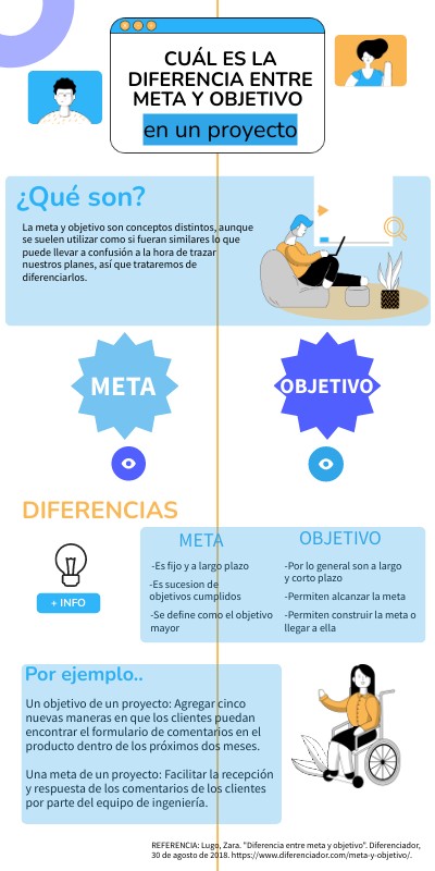 REFERENCIA: Lugo, Zara. "Diferencia entre meta y objetivo". Diferenciador, 30 de agosto de 2018. https://www.diferenciador.com/meta-y-objetivo/.