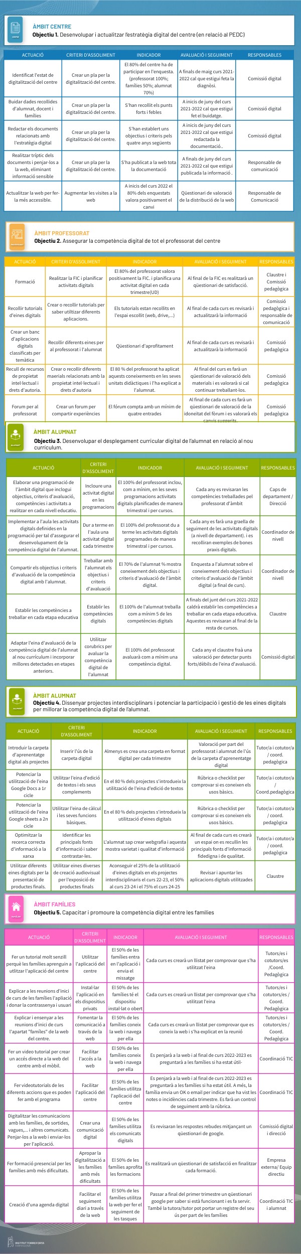 Objectiu 1. Desenvolupar i actualitzar l’estratègia digital del centre (en relació al PEDC)