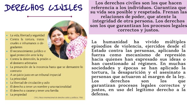 Los derechos políticos posibilitan su desarrollo individual, social y político. Esto permite a las personas ser parte y expresarse como son en el ámbito privado y público; integrar organizaciones civiles, políticas o religiosas; formar su pensamiento ideológico y las creencias que a bien tuvieren.
