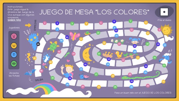 Instrucciones: Este juego sigue la dinámica del Juego de la Oca aunque con algunas sorpresas. SABER MÁS