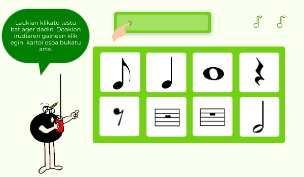 Laukian klikatu testu bat ager dadin. Doakion irudiaren gainean klik egin kartoi osoa bukatu arte.