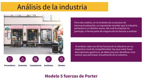 Para este análisis, en el contexto de un proceso de internacionalización, es importante recordar que la industría pertenece a un destino nuevo, del cual la empresa no participa, ni forma parte de ninguna de las fuerzas a analizar.