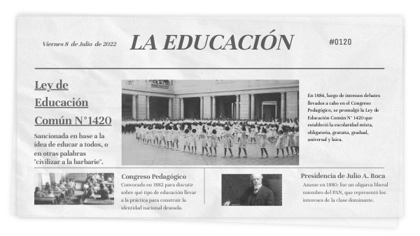 La Ley de Educación Común N°1420 fue sancionada en 1884 como producto de los intensos debates que se dieron durante el Congreso Pedagógico.Si bien esta ley sólo actuaba en las escuelas que dependían de la nación, se la considera una de las más importantes, ya que fue la primera que estableció la educación como un derecho: donde todos y todas iban a la misma escuela, en las mismas condiciones y aprendían lo mismo para formarse como ciudadanos.