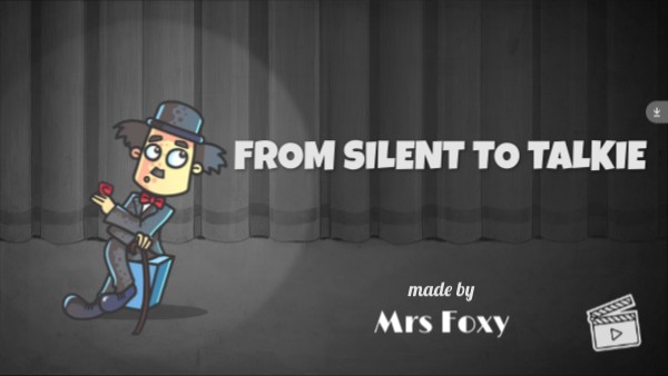 1) Watch an extract from a silent movie. 2) Transform it into a talkie: - imagine the dialogue; - write the script; - play it (oral presentation).