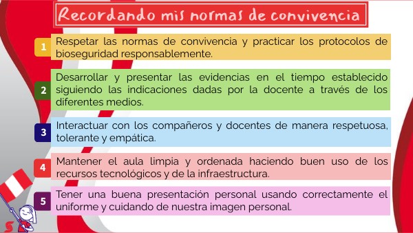 Respetar las normas de convivencia y practicar los protocolos de bioseguridad responsablemente.