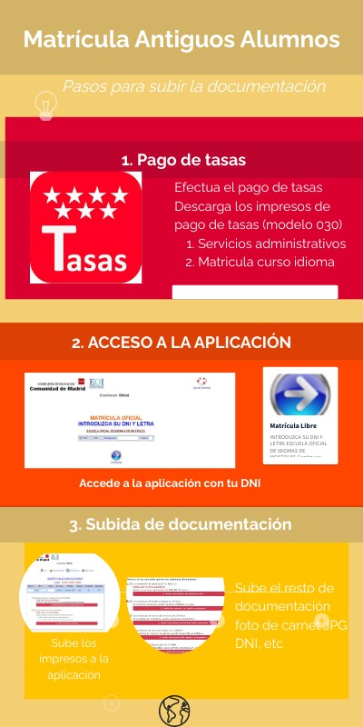 Subida de documentación de la matrícula de antiguos alumnos en la EOI de Móstoles
