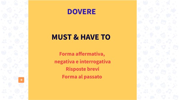 “I must stop smoking” → “Devo smettere di fumare”. In questo caso chi pensa che l’azione dello smettere di fumare sia necessaria/obbligatoria (forte dovere morale), sono io. Si tratta di una mia decisione e quindi non è imposta da nessuno. “I have to stop smoking” → “Devo smettere di fumare”. Letteralmente la frase ha lo stesso significato di quella precedente; quello che cambia è l' intenzione. Ad esempio è un medico che mi impone che devo smettere di fumare, non è più una mia scelta; seppur non obbligatoria, l’azione non è volontaria.