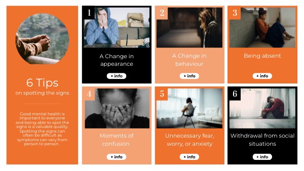 Good mental health is important to everyone and being able to spot the signs is a valuable quality. Spotting the signs can often be difficult as symptoms can vary from person to person.