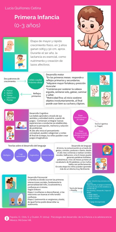 Etapa de mayor y rápido crecimiento físico, en 3 años ganan 10Kg y 50 cm, aprox. Durante el 1er año, la lactancia es esencial, como nutrimento y creación de lazos afectivos.
