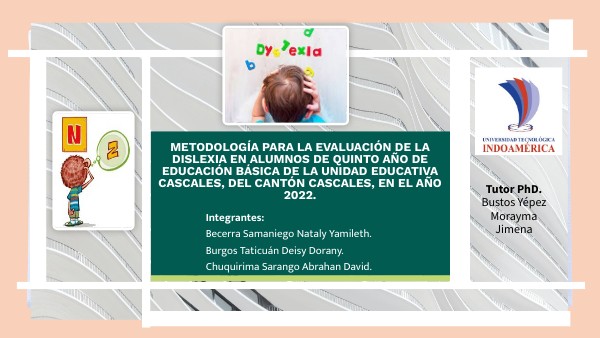 METODOLOGÍA PARA LA EVALUACIÓN DE LA DISLEXIA EN ALUMNOS DE QUINTO AÑO DE EDUCACIÓN BÁSICA DE LA UNIDAD EDUCATIVA CASCALES, DEL CANTÓN CASCALES, EN EL AÑO 2022.