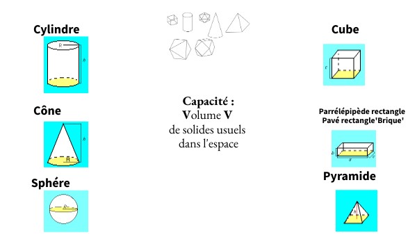 Capacité : Volume V de solides usuels dans l'espace
