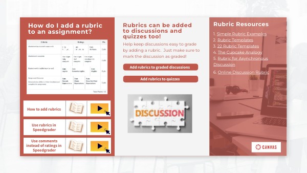 Rubrics can be added to discussions and quizzes too!