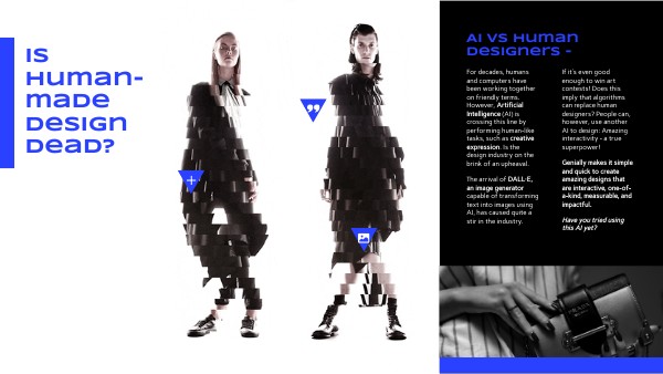 If it's even good enough to win art contests! Does this imply that algorithms can replace human designers? People can, however, use another AI to design: Amazing interactivity - a true superpower! Genially makes it simple and quick to create amazing designs that are interactive, one-of-a-kind, measurable, and impactful. Have you tried using this AI yet?