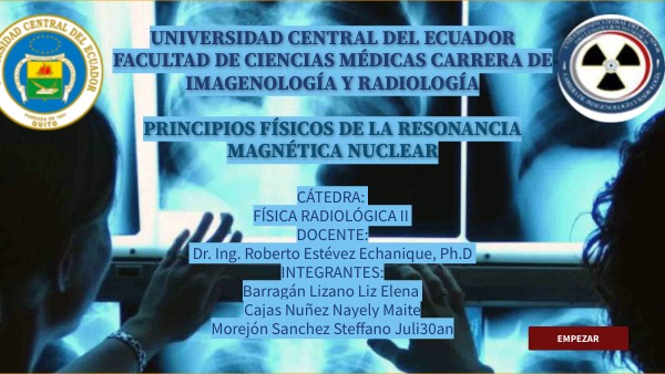 UNIVERSIDAD CENTRAL DEL ECUADOR FACULTAD DE CIENCIAS MÉDICAS CARRERA DE IMAGENOLOGÍA Y RADIOLOGÍA PRINCIPIOS FÍSICOS DE LA RESONANCIA MAGNÉTICA NUCLEAR
