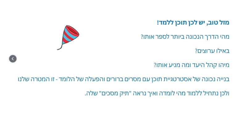 מזל טוב, יש לכן תוכן ללמד! מהי הדרך הנכונה ביותר לספר אותו? באילו ערוצים? מיהו קהל היעד ומה מניע אותו? בנייה נכונה של אסטרטגיית תוכן עם מסרים ברורים והפעלה של הלומד - זו המטרה שלנו ולכן נתחיל ללמוד מהי לומדה ואיך נראה "תיק מסכים" שלה.