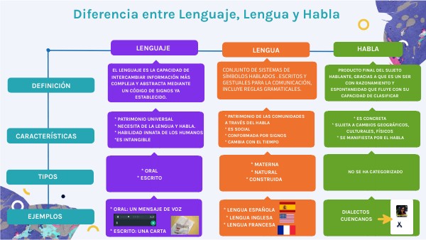 * patrimonio de las comunidades a través del habla * es social * conformada por signos * cambia con el tiempo