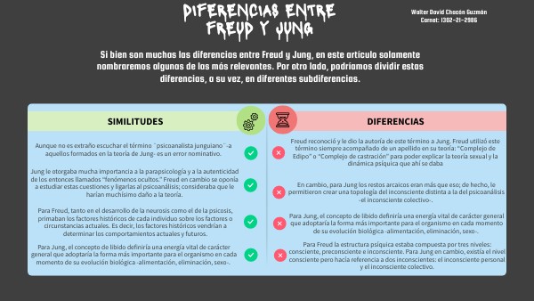 Si bien son muchas las diferencias entre Freud y Jung, en este artículo solamente nombraremos algunas de las más relevantes. Por otro lado, podríamos dividir estas diferencias, a su vez, en diferentes subdiferencias.