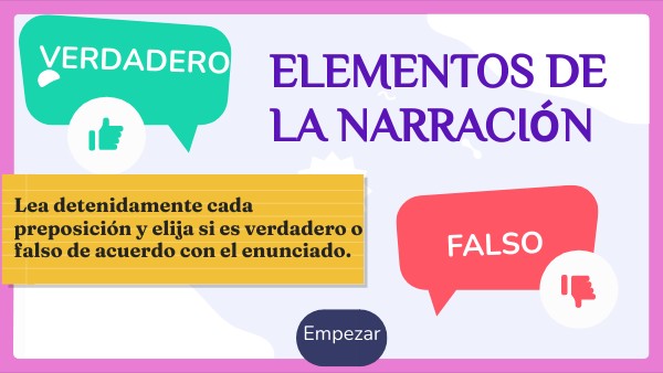 Lea detenidamente cada preposición y elija si es verdadero o falso de acuerdo con el enunciado.