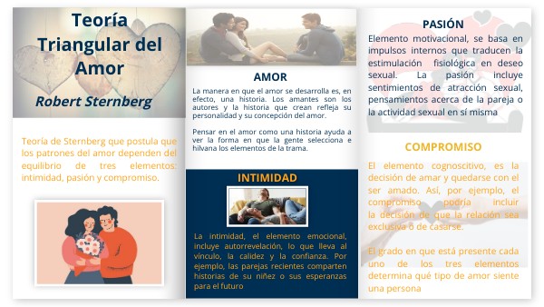 Teoría de Sternberg que postula que los patrones del amor dependen del equilibrio de tres elementos: intimidad, pasión y compromiso.