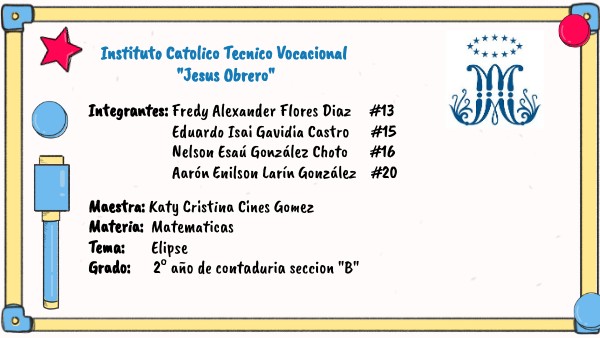 Maestra: Katy Cristina Cines Gomez Materia: Matematicas Tema: Elipse Grado: 2° año de contaduria seccion "B"