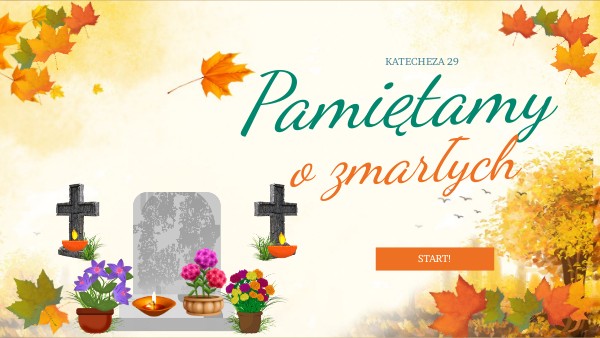– A ten drugi? – Drugiego listopada jest Dzień Zaduszny. Tego dnia modlimy się za wszystkich zmarłych, którzy jeszcze nie trafili do nieba. – Jak to? Nie wszyscy zmarli trafiają do nieba? – dopytywała dziewczynka. – Pan Jezus pragnie, aby wszyscy byli w domu Ojca, ale niektórzy popełniali błędy i nie zdążyli przed śmiercią przeprosić za nie dobrego Boga. – I co się z nimi dzieje? – Trafiają do czyśćca. Tam przepraszają Pana Boga. Gdy już oczyszczą się z grzechów do końca, wtedy wchodzą do nieba. – Ojej, jakie to smutne. Chciałabym im pomóc, ale nie wiem jak. – Wnuczka spojrzała na babcię z nadzieją. Babcia uśmiechnęła się i powiedziała: – Każdy z nas może pomóc zmarłym, by jak najszybciej dostali się do nieba. Trzeba…
