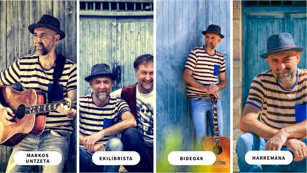 He was born in Eibar in 1970. After learning how to play and sing the songs he loved on guitar, he started the year of 1996 in England, in a pub called The White Swan, singing his first songs in public. After three years abroad, he returned to the Basque Country and began writing his songs in Basque. His record career, which began in 2002, is now taking its sixth step with a production called The tighrope walker.