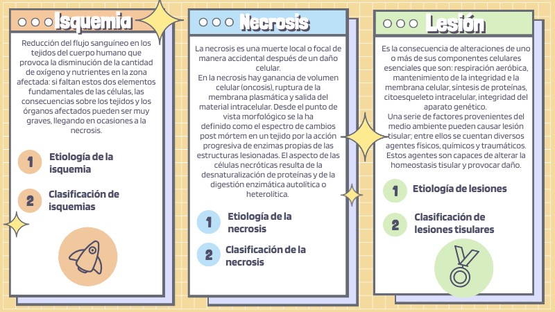 Es la consecuencia de alteraciones de uno o más de sus componentes celulares esenciales que son: respiración aeróbica, mantenimiento de la integridad e la membrana celular, síntesis de proteínas, citoesqueleto intracelular, integridad del aparato genético. Una serie de factores provenientes del medio ambiente pueden causar lesión tisular; entre ellos se cuentan diversos agentes físicos, químicos y traumáticos. Estos agentes son capaces de alterar la homeostasis tisular y provocar daño.